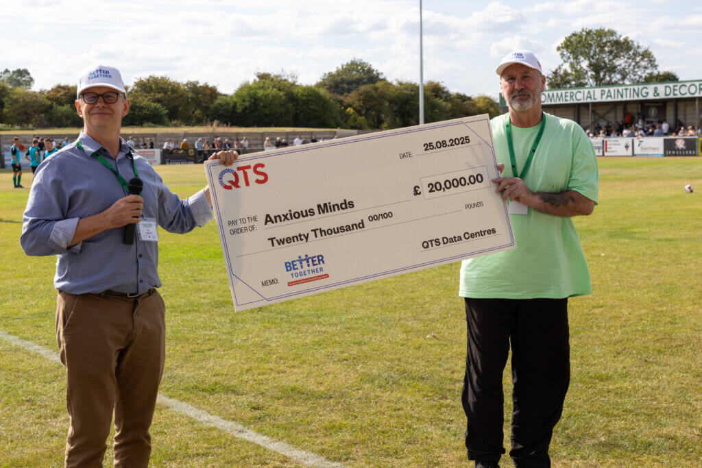 In August 2025, the Better Together campaign kicked off with a historical Derby Day featuring two local football clubs – the Blyth Spartans AFC and Ashington AFC. For the first time in more than 40 years, these two historic clubs renewed their rivalry at Blyth’s Croft Park. To mark the occasion and officially kickoff the campaign, QTS and Anxious Minds hosted a Community Day gathering featuring live music, food, local vendors and family-friendly activities.